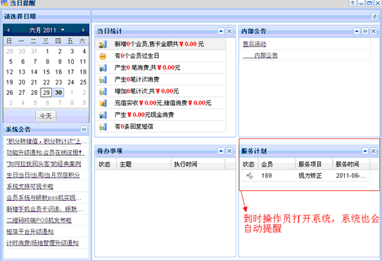 一卡易会员管理系统的服务计划,旨在提高商家的服务连贯性。通过量身定做的对每个会员执行某项服务,那么系统就会自动在指定时间内提醒会员、操作员执行相应的服务。如半月之后某会员需要做视力检查或者更换隐形眼镜,那么系统会自动发短信通知会员。此功能能提高商家的服务质量,提高会员满意度,让您在同业竞争中脱颖而出。