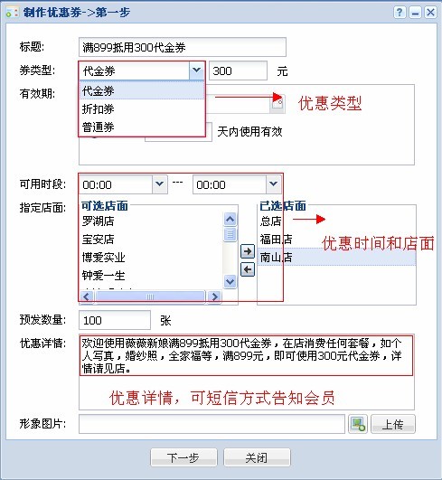1、制作“电子优惠券”: